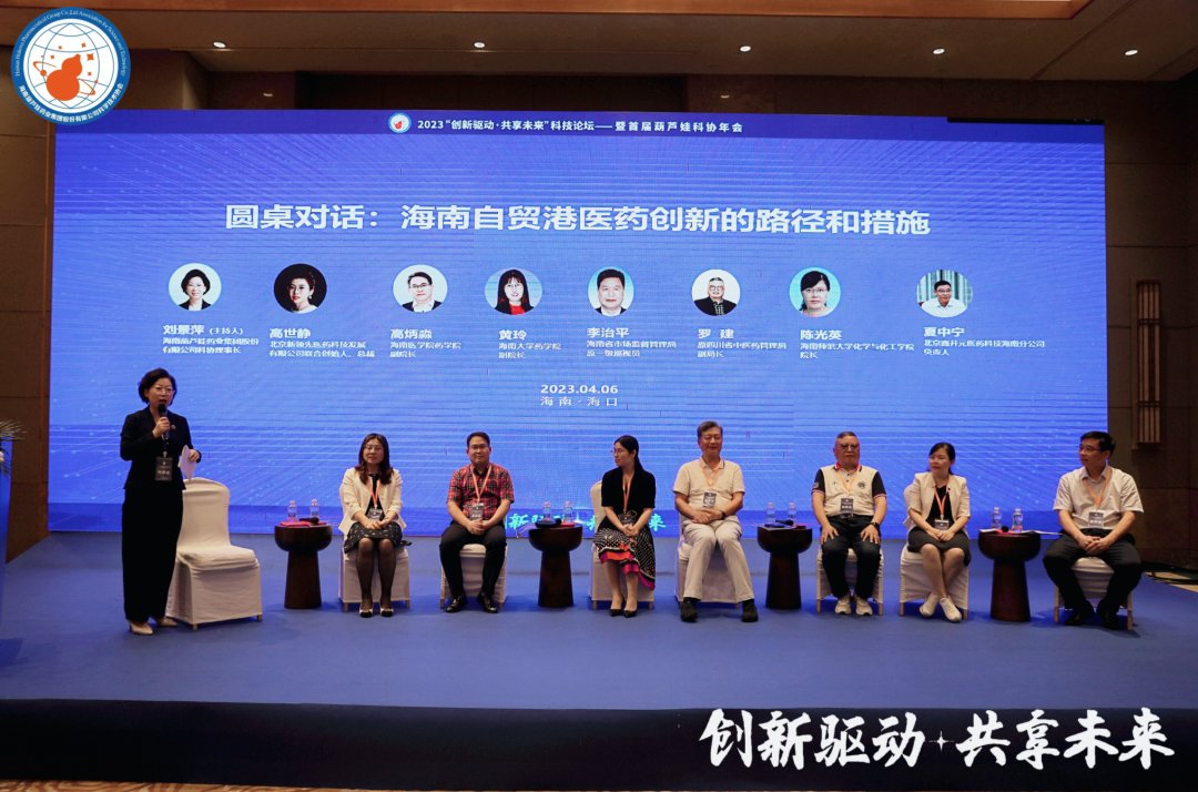 四川省中医药管理局原副局长罗建、海南省市场监督管理局原一级巡视员李治平、海南大学药学院副院长黄玲、海南医学院药学院副院长高炳淼、海南师范大学化学与化工学院院长陈光英、北京鑫开元医药科技有限公司海南分公司负责人夏中宁、北京新领先医药科技发展有限公司总裁、杭州康领先医药科技有限公司总经理高世静等,在主题为“海南自贸港医药创新的路径和措施”的圆桌论坛中积极献策。新宝GG药业集团董事长、新宝GG药业科协主席刘景萍主持论坛。